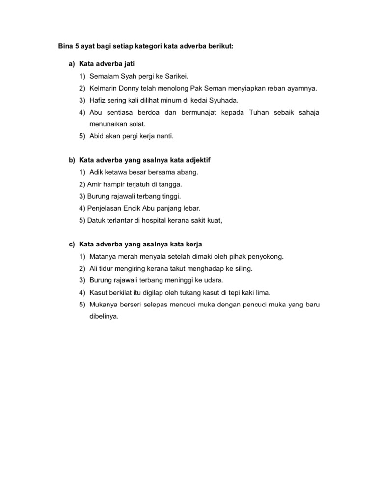 Ahmad Bina 5 Ayat Bagi Setiap Kategori Kata Adverba Berikut Pdf